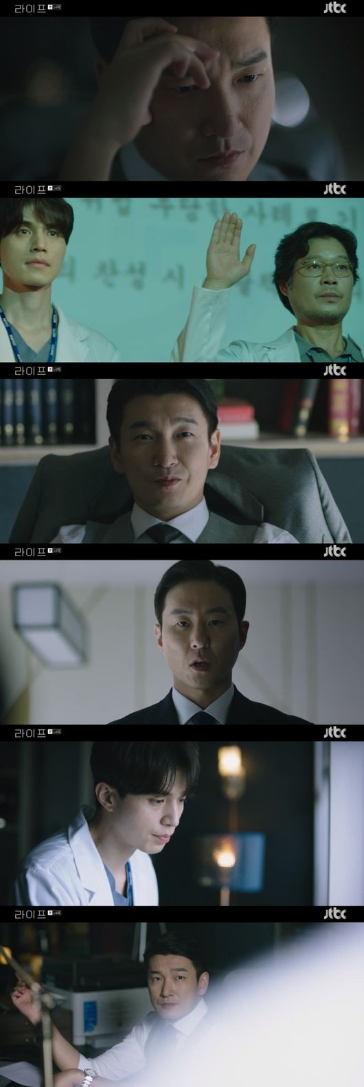 4일 오후 11시에 방송된 JTBC 월화 드라마 '라이프(연출 홍종찬/ 극본 이수연)' 14회에서 예진우(이동욱 분)는 의료진의 뜻을 모아 부원장 김태상(문성근 분)을 내쫓았고 주경문(유재명 분)을 부원장으로 임명했다. 그리고는 화정그룹에 휘둘리는 상국대학병원을 지키기 위해 총괄 사장 구승효(조승우 분)를 해임하려는 의견을 받았다.