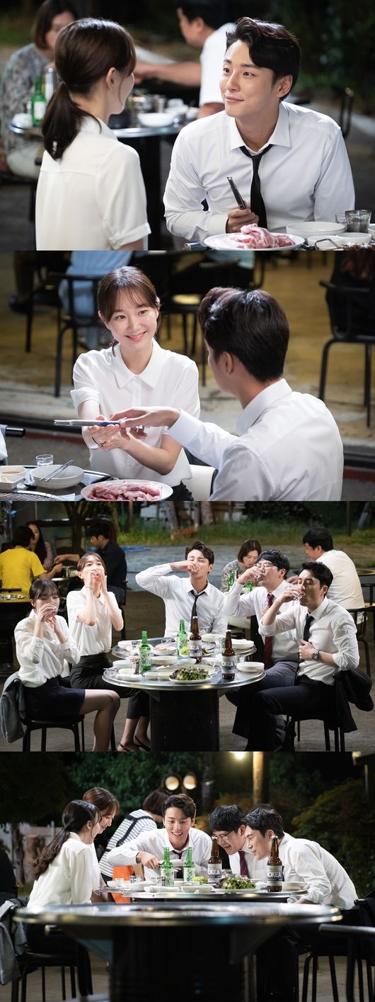 이와 함께 놓칠 수 없는 것이 회식 중에도 꿀이 뚝뚝 떨어지는 한강호와 송소은의 눈빛이다. 함께 여러 사건을 겪으며 성장한 두 사람. 현재 두 사람 사이에는 핑크빛 로맨스 기운까지 형성됐다. 서로를 향해 달달한 눈빛과 미소를 짓고 있는 두 사람이 보는 사람까지 설레게 만든다.
