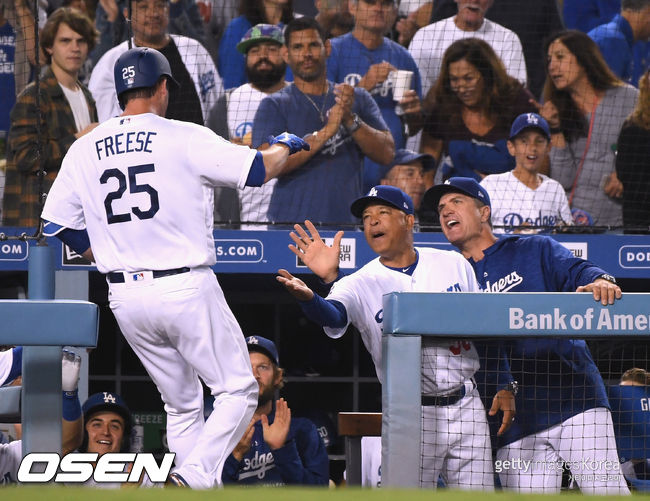 그리고 다저스는 4회 선두 타자 데이빗 프리즈의 좌월 솔로포로 4-3까지 따라 붙었고 키케 에르난데스의 내야 안타, 크리스 테일러의 좌중간 2루타로 무사 2,3루 추가 득점 기회를 마련했다. 오스틴 반스의 땅볼 타구를 3루수 토드 프레이저가 제대로 처리하지 못해 4-4로 균형을 맞췄다. 그리고 브라이언 도져의 3루 땅볼로 5-4로 앞서갔다.