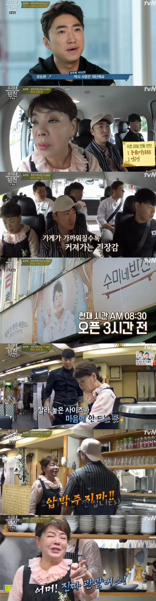 오픈 2시간 전, 반찬만들기를 마무리했다. 어느새 1시간이 남았고, 장동민이 이를 전하자 김수미는 "압박주지 마라"며 긴장했다.