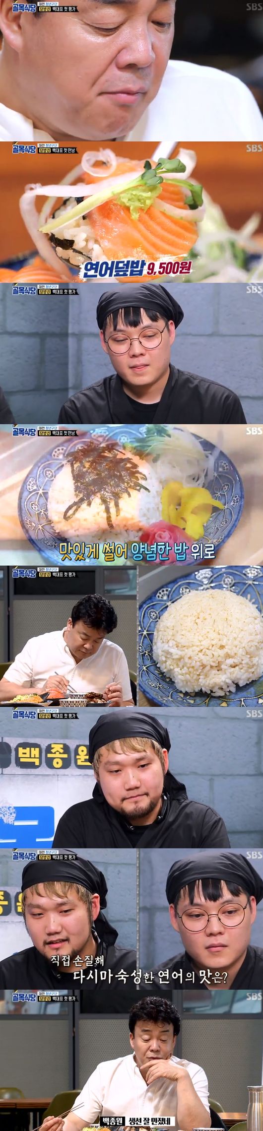 백종원은 "연어를 좋아하는 편은 아니다"며 "연어부터 먹어보겠다"고 했다. 이후 밥과 함께 연어를 다시 맛봤다.