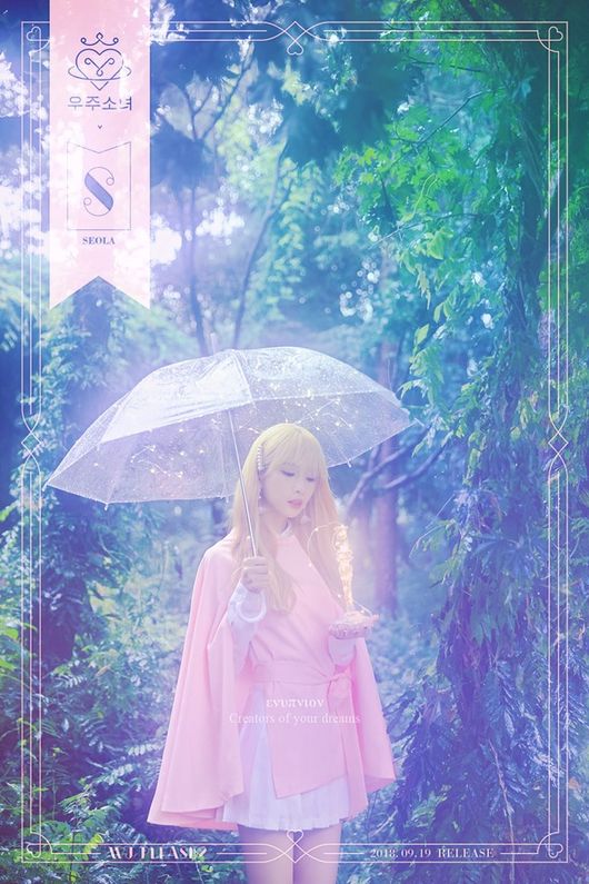 공개된 사진 속에서는 에뉩니온(ενυπνιον, 꿈) 유닛의 멤버 설아와 루다의 몽환적인 매력을 한껏 담아냈다. 두 사람은 모두 손안에 아름다운 불빛과 함께해 신비로운 느낌을 더한다. 특히 설아는 하얀색과 분홍색이 조화를 이루는 의상을 입은 채 비 오는 숲속에서 우산을 쓰고 서 있어 청초한 분위기를 자아낸다. 루다 역시 화사한 분홍색의 의상을 차려입고 우수의 젖은 눈빛으로 카메라를 응시해 보는 이들의 시선을 집중시킨다.