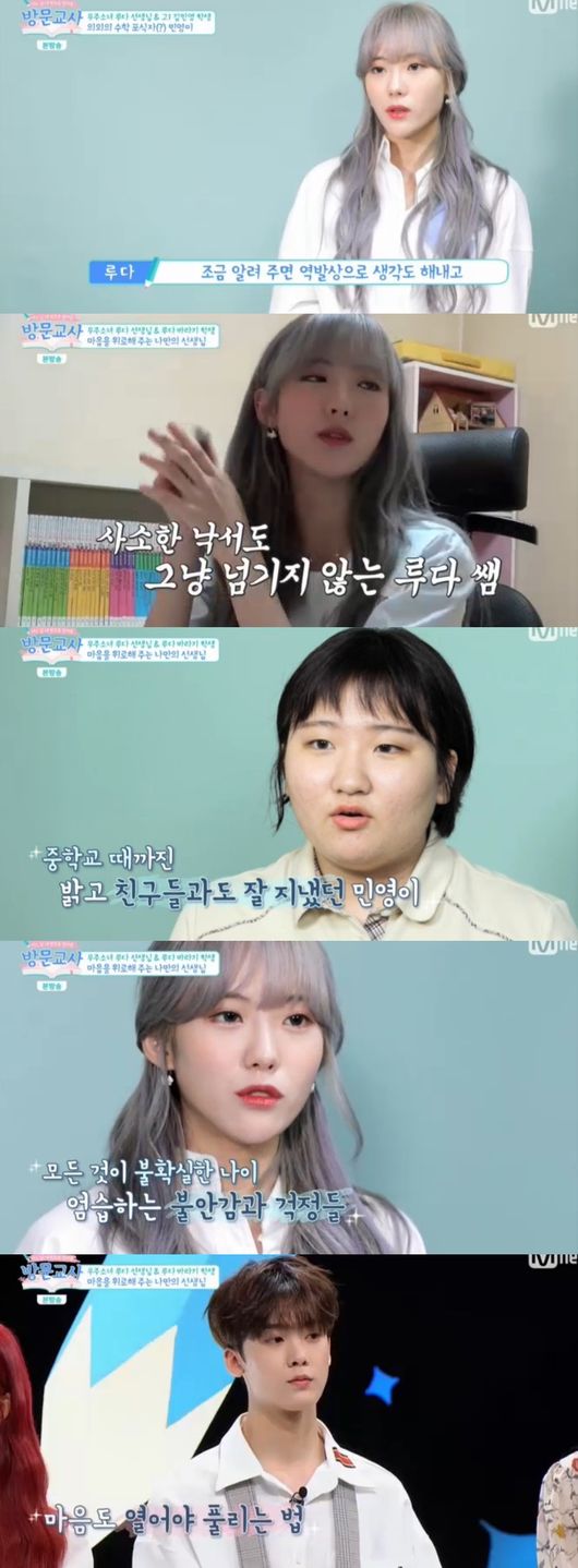 루다는 "언니도 이맘 때 그랬다"면서 심한 외모 콤플렉스를 겪었다고 했다. 남의 시선, 말 한마디가 힘들게 다가와 상담받고 많이 좋아졌다고 경험에 빗대어 진지하게 얘기를 들어줬다. 루다는 "겪었던 일들 같아 마음이 아프다, 그때는 자아가 확실히 생기지 않았다"면서 민영의 어려움을 헤어렸다. 루다의 공감으로 민영에게도 포근한 위로가 됐다. 서로 서로에게 좀더 가까워지는 시간이었다. 때로는 친언니처럼, 선생님처럼 민영에게 진심을 다했다.
