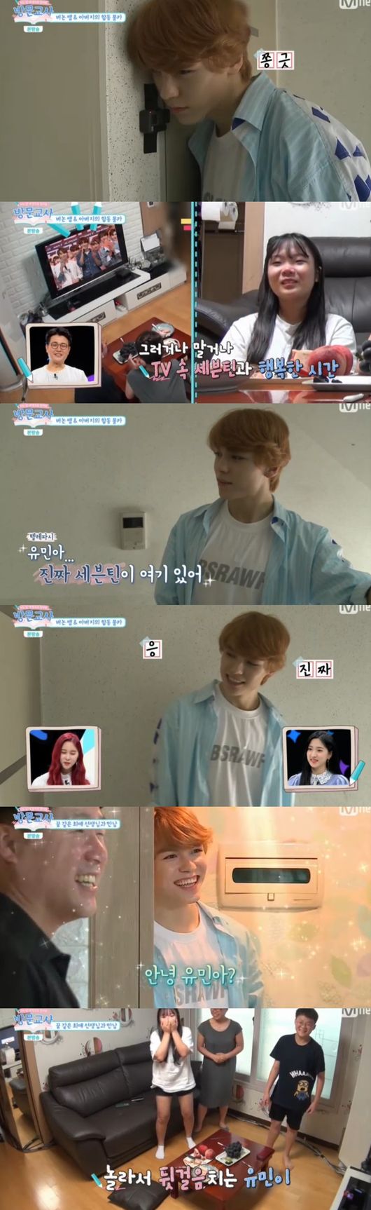 과외학생이 된 유민이는 세븐틴 홀릭에 빠졌다. 그사이, 신청한 학부모는 딸에게 서프라이즈 이벤트를 해주기 위해 먼저 집에 들어가겠다고 했다. 아무일 도 없었다는 듯이 집에 도착했고, 자연스럽게 대화를 시도, 세븐틴이 선생님이 되면 어떻게 할거냔 말에 딸 유민이는 전교1등을 하겠다고 외쳤다. 이때, 버논이 등장했다. 유민이는 놀라서 뒷걸음질 했다. 갑자기 조각상이 걸어와서 놀랐다며 격한 반응에 버논도 깜짝 놀랐다.