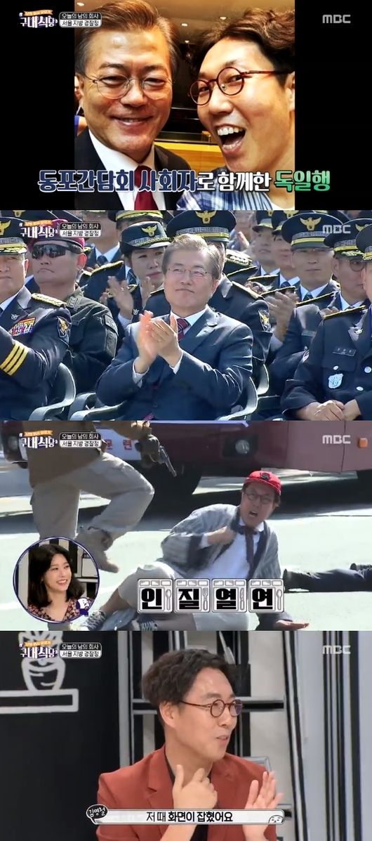 경찰의 날 명예경찰 위촉 당시를 회상한 김영철은 문재인 대통령을 만나지 못하고 인질 역할극을 한 것으로 알려져 모두를 폭소케 했다.