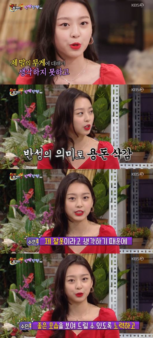 배우 이수민이 열애설과 욕설논란에 대해 ‘해피투게더3’에서 재차 사과를 전하며 길었던 성장통에 종지부를 찍었다.