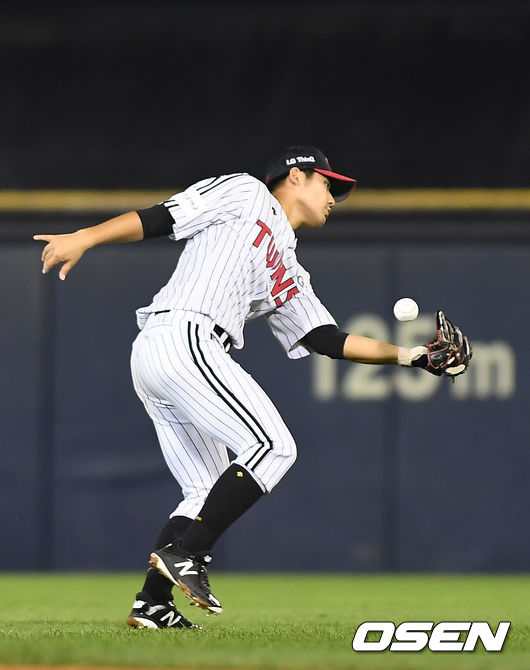 3회 선발 임찬규가 갑자기 집중타를 맞으며 흔들렸다. 수비에서도 아쉬웠다. 무사 1루에서 김찬형의 타구를 좌중간으로 날아갔다. 중견수와 좌익수가 동시에 달려갔고, 중견수 이천웅이 마지막에 글러브에 닿았지만 제대로 포구하지 못했다. 기록은 실책이 아닌 2루타로 무사 2,3루가 됐다.