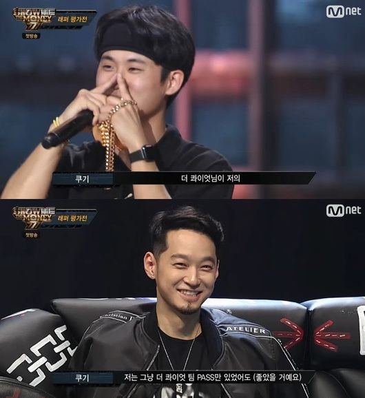 그런가 하면 더 콰이엇을 향해 공개적으로 팬심을 드러낸 쿠기도 있다. 개성 있는 톤과 뛰어난 랩 실력 및 무대 장악력으로 올패스를 받은 그는 "랩을 한 지 얼마나 됐는가"라는 질문에 "1년이 안 됐다"라고 대답해 "말도 안 된다. 거짓말하지 마라"는 소리까지 들었다.