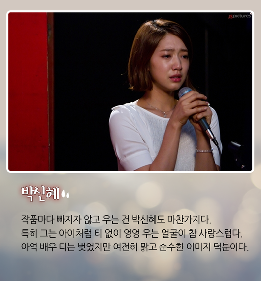 작품마다 빠지자 않고 우는 건 박신혜도 마찬가지다. 특히 그는 아이처럼 티 없이 엉엉 우는 얼굴이 참 사랑스럽다. 아역 배우 티는 벗었지만 여전히 맑고 순수한 이미지 덕분이다.