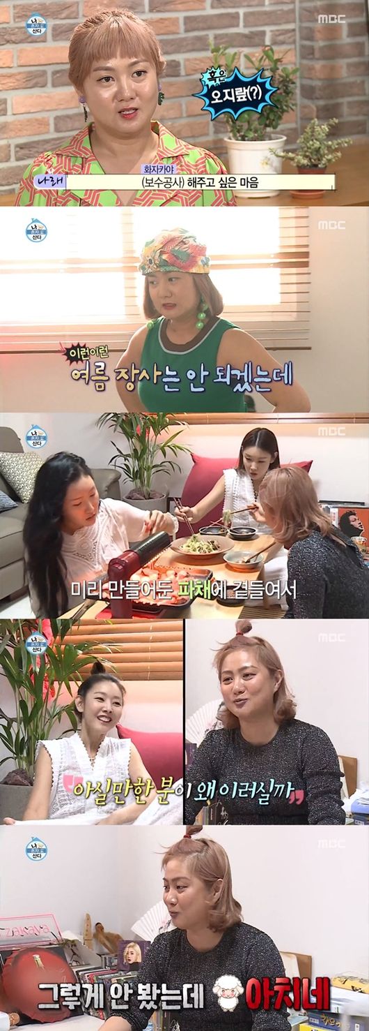 이날 박나래는 “업장(?)을 운영하는 선배로서 화자카야를 보며 안타까운 것들이 있었다. 이를 보수해주고 싶은 마음 혹은 오지랖이 있어 방문하게 됐다”며 화사의 집으로 향했다. 화사는 박나래의 화려한 ‘업장 스타일’ 의상을 보고 웃음을 멈추지 못했다.