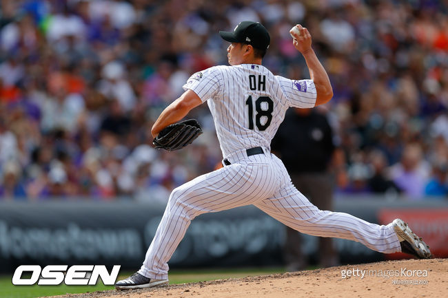 오승환은 8일(이하 한국시간) 미국 덴버주 콜로라도 쿠어스필드에서 열린 '2018 메이저리그(MLB)' LA 다저스와의 맞대결에서 7회초 마운드에 올랐다.