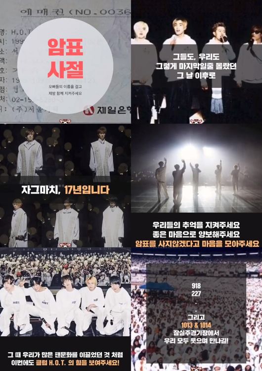 H.O.T. 팬들은 8일 SNS 등을 통해 "우리가 처음 최초로 이끌었던 팬 문화. 하얀 천사들의 아름다운 팬 문화를 다시 보여줄 때 바로 지금입니다"라는 메시지와 함께 암표 사절 영상을 공유하고 있다.
