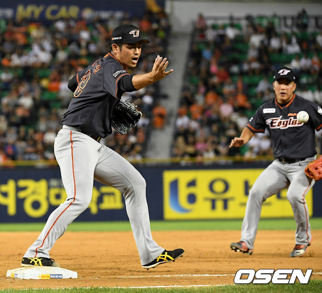 오지환을 맞이한 이태양은 3구째 포크볼로 1루 땅볼을 유도했다. 1루수 정근우가 공을 잡는 것까지는 좋았다. 투수 이태양도 빠르게 1루 커버를 들어갔다. 그런데 정근우의 1루 토스를 이태양이 받지 못했다. 토스가 가슴 높이 위로 약간 높았지만 충분히 잡을 수 있는 위치였다.