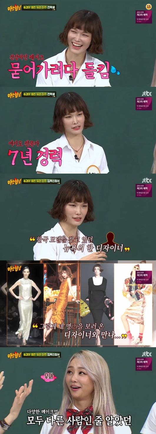 입학신청서를 시작했다. 경아의 장래희망에 대해 '후회없이 하루를 사는 것'이라 했다. 모델 활동하면서 힘든 일 많았다고. 특히 가는 해외 출장때마다 테러가 일어났다고 했다. 경아는 "언제 죽을지 모르는 인생, 최선을 다해 여한없이 하루를 살아야겠다 생각했다"며 이유를 전했다. 이어 한국 최초 4대 컬렉션 진출했던 과거를 전해며 뉴욕 컬렉션 진출한 한국 1호 모델이라 해 눈길을 끌었다.