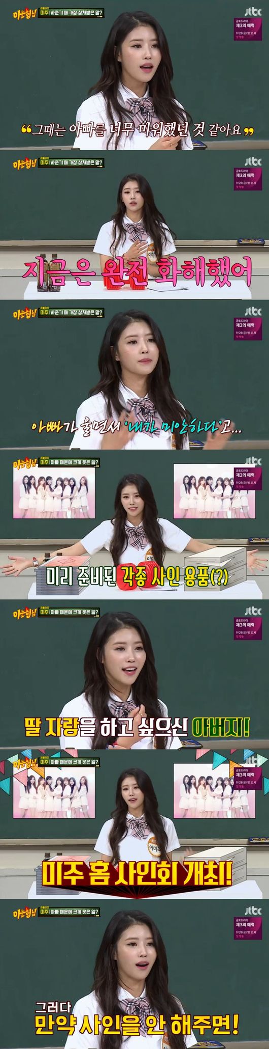 러블리즈 팬이 됐다는 아버지가 딸의 CD를 내밀며 홈 사인회를 여신다고. 미주는 "아버지와 정말 사이 좋아졌다"고 말했다.