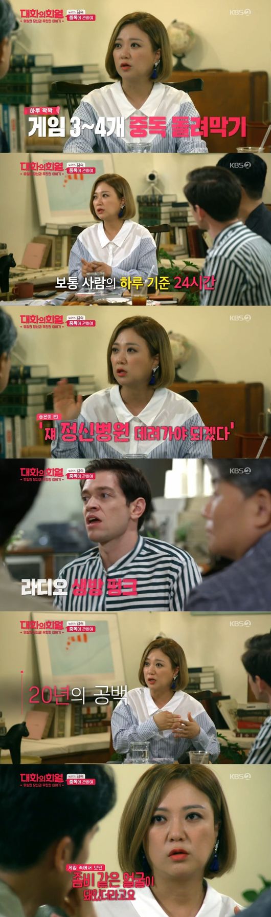 또한 김숙은 게임중독이 있었다고 고백했다. 그는 “한 2년 갔다. 스타그래프트를 하다가 포트리스 등 게임들이 많이 나올 시기였다. 그 때 게임 3~4개를 돌려서 했다. 집에 PC를 3~4대를 놓고 했다. 저를 만나려면 집으로 와야 했다. 그 때 송은이 씨가 정신병원에 데려가야겠구나 생각했다고 한다. 저는 36시간이 하루였다. 12시간 자다가 일어나서 게임하고 그 다음에 배가 안 고프더라”라고 당시를 회상했다.