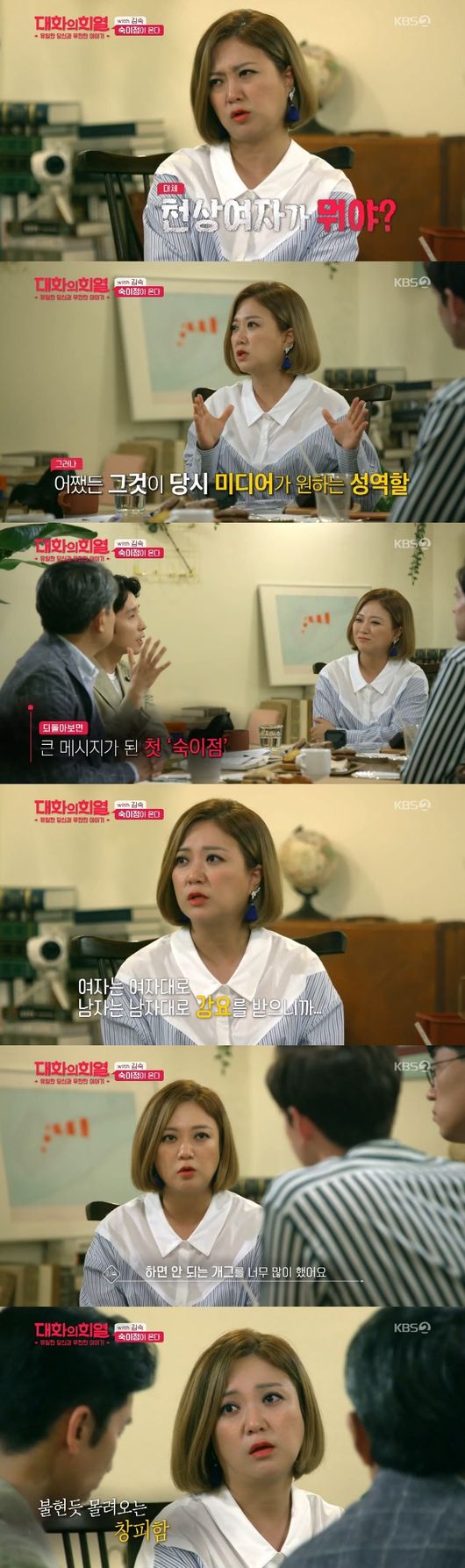 지난 8일 첫 방송된 KBS2 ‘대화의 희열’에는 첫 번째 게스트로 개그우먼 김숙이 출연했다.
