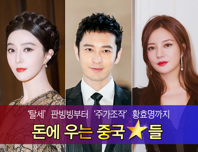 판빙빙부터 황효명까지 중국 톱스타들이 최근 돈과 관련된 위법 행위로 사람들의 입에 오르내리고 있다. 특히 탈세 의혹을 받고 있는 판빙빙은 의혹이 제기된 이후 100일이 넘도록 종적을 감춰 각종 괴담들을 만들어내고 있다. 탈세부터 주가조작까지 돈에 우는 중국 연예인들을 모았다.
