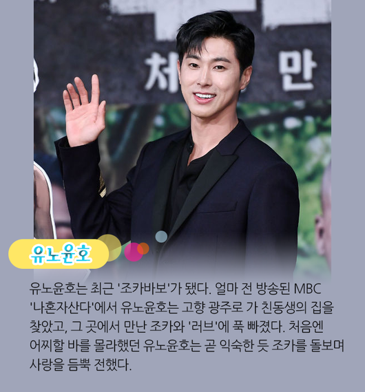 유노윤호는 최근 '조카바보'가 됐다. 얼마 전 방송된 MBC '나혼자산다'에서 유노윤호는 고향 광주로 가 친동생의 집을 찾았고, 그 곳에서 만난 조카와 '러브'에 푹 빠졌다. 처음엔 어찌할 바를 몰라했던 유노윤호는 곧 익숙한 듯 조카를 돌보며 사랑을 듬뿍 전했다.