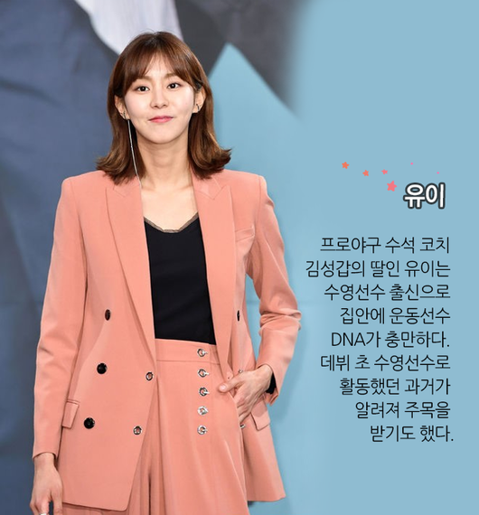 프로야구 수석 코치 김성갑의 딸인 유이는 수영선수 출신으로 집안에 운동선수 DNA가 충만하다. 데뷔 초 수영선수로 활동했던 과거가 알려져 주목을 받기도 했다. 2015년 방송된 SBS '주먹쥐고 소림사'에서는 물 위를 달리는 수상경공에 도전했고, "물을 좋아해서 물에 관련된 훈련은 충분히 잘할 수 있을 거라 생각했는데, 물 위를 달릴 거라곤 상상도 못 했다"며 소감을 털어놓기도 했다.
