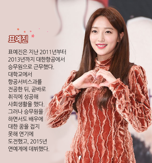 표예진은 지난 2011년부터 2013년까지 대한항공에서 승무원으로 근무했다. 대학교에서 항공서비스과를 전공한 뒤, 곧바로 취직에 성공해 사회생활을 했다. 그러나 승무원을 하면서도 배우에 대한 꿈을 접지 못해 연기에 도전했고, 2015년 연예계에 데뷔했다. 최근 현우와 열애를 인정하면서 승무원 이력이 다시 한번 주목을 받았다.