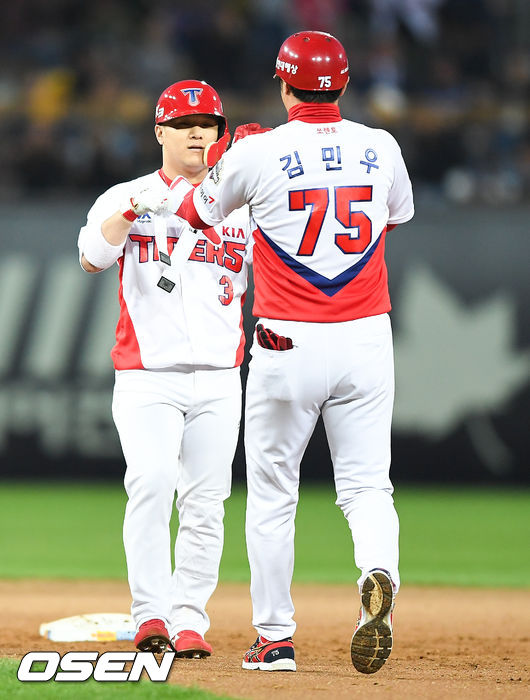 중심타선은 기존대로 최형우(지명타자) 안치홍(1루수) 이범호(3루수)를 가동한다. 2번 타자였던 이명기(좌익수)가 6번으로 이동했고 홍재호(2루수) 유재신(중견수) 한승택(포수)으로 하위타선을 꾸렸다.