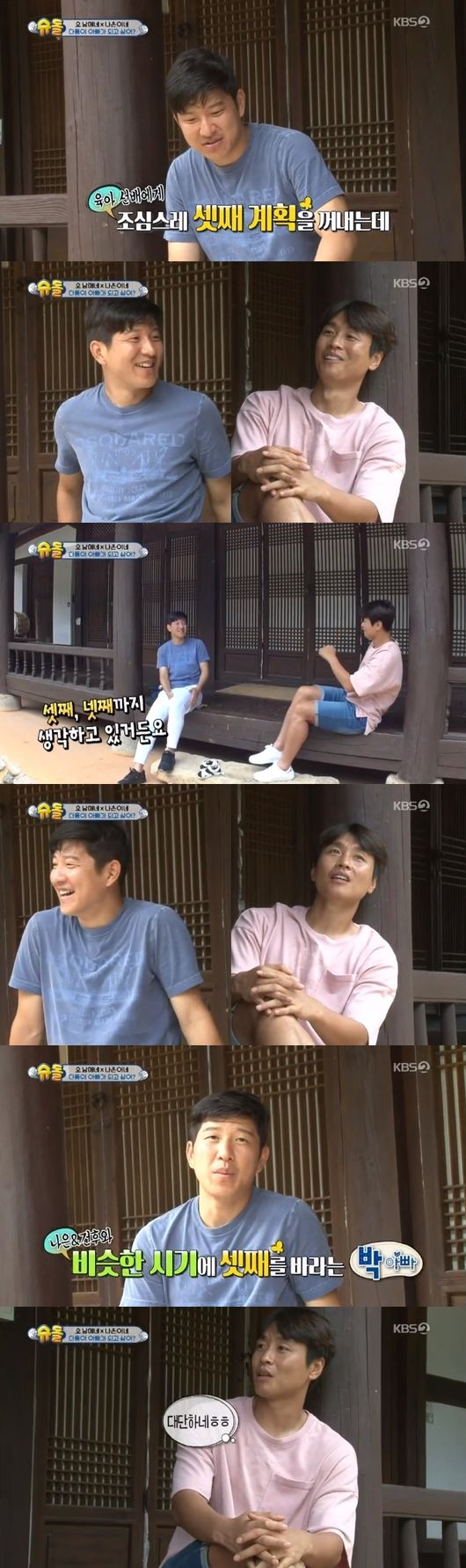 현재 나은, 건후의 아빠인 박주호는 "지금 셋째를 계획 중인데, 넷째까지 생각하고 있다"고 했고, 이동국은 "많으면 많을수록 좋긴하다. 근데 아이를 또 갖고 싶다고 생각하는 게 대단하다"고 했다.