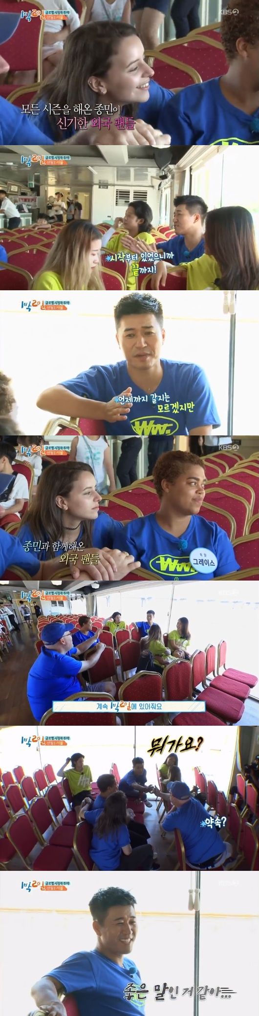 미국에서 온 마이크는 "계속 '1박2일'에 있어주면 좋겠다. 지금 멤버들 모두 같이 약속"이라고 말했고, 영어를 완벽하게 이해하지 못한 김종민은 "일단 좋은 말인 것 같다"며 웃었다.