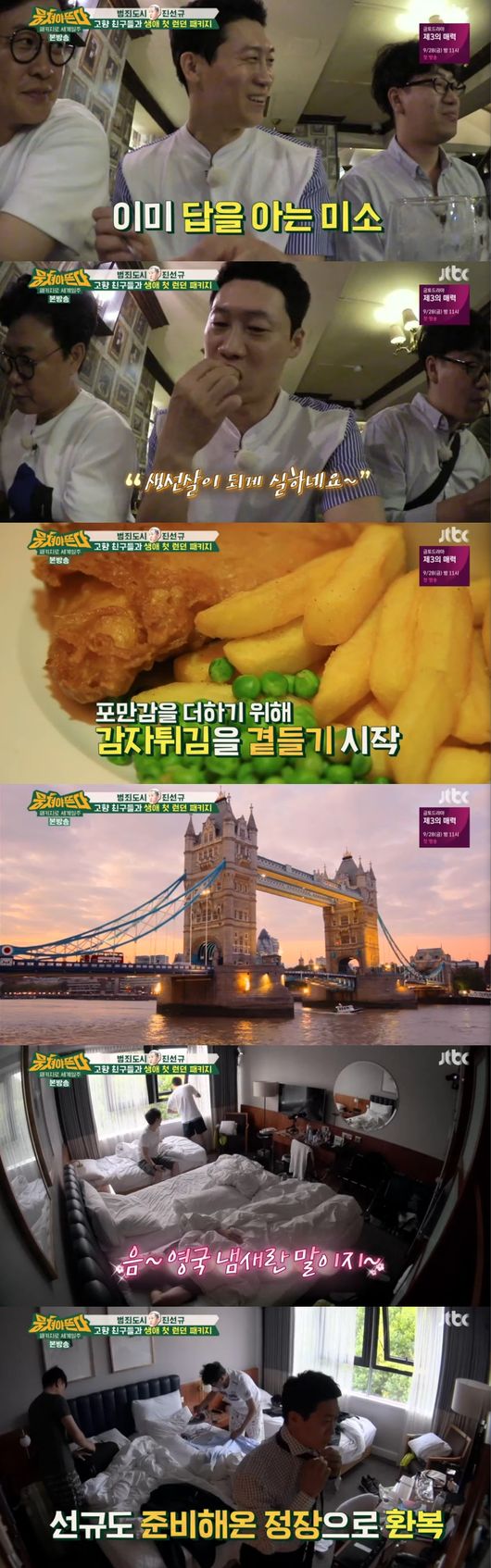 9일 방송된 JTBC 예능 '패키지로 세계일주 - 뭉쳐야 뜬다'에서 범죄도시에서 큰 화제를 몰고온 배우 진선규가 고향친구들이 함께 생애 첫 런던 패키지를 떠났다.