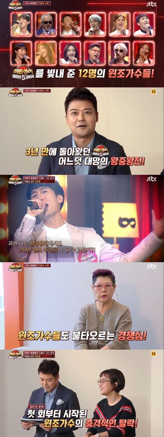 9일 방송된 JTBC 예능 '히든싱어 시즌5' 왕중왕전이 13인의 모창신들이 소개됐다.