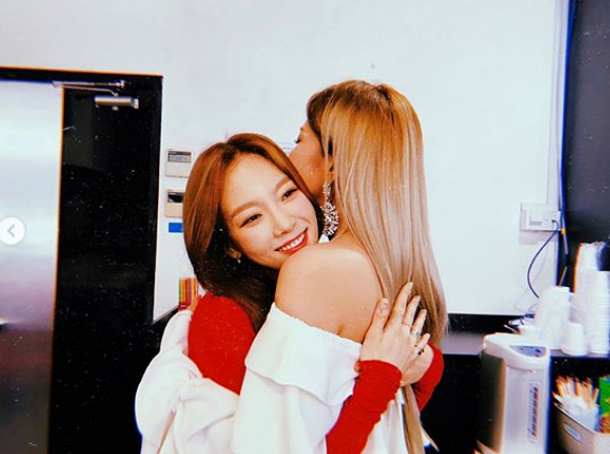 또한 헤이즈도 자신의 SNS에 "언니 안아주기를 드디어 했다. #친절하고 #다정하고 #요정하고 #천사하고 #따뜻한 태연 선배님과의 첫 만남 . . 잠 안 자고 계속 생각해야지. #성성성성성성성성덕"이라는 글과 함께 사진들을 게재했다.