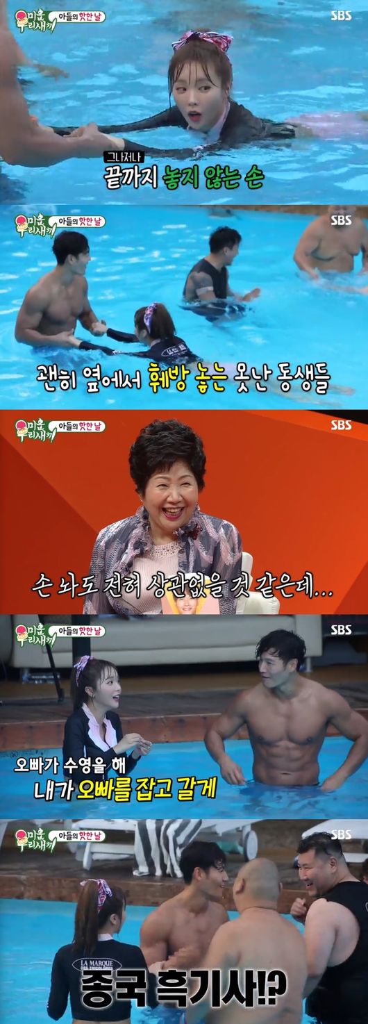 또 김종국은 게임에서 진 홍진영을 위해 흑기사를 자처하며 시종일관 남자다운 면모를 뽐냈다. 이에 스튜디오에 있던 모든 이들이 김종국과 홍진영이 이뤄지길 바란다는 목소리를 내놓았다. 어머니들은 "이미 좋아하고 있다"고 말했고, 김종국의 어머니 역시 기분 좋게 웃으며 홍진영의 마음이 중요하다는 속내를 털어놨다. 스페셜 MC로 나선 이승기도 스킨십이 자연스러운 두 사람을 유심히 지켜보며 관심을 드러냈다.