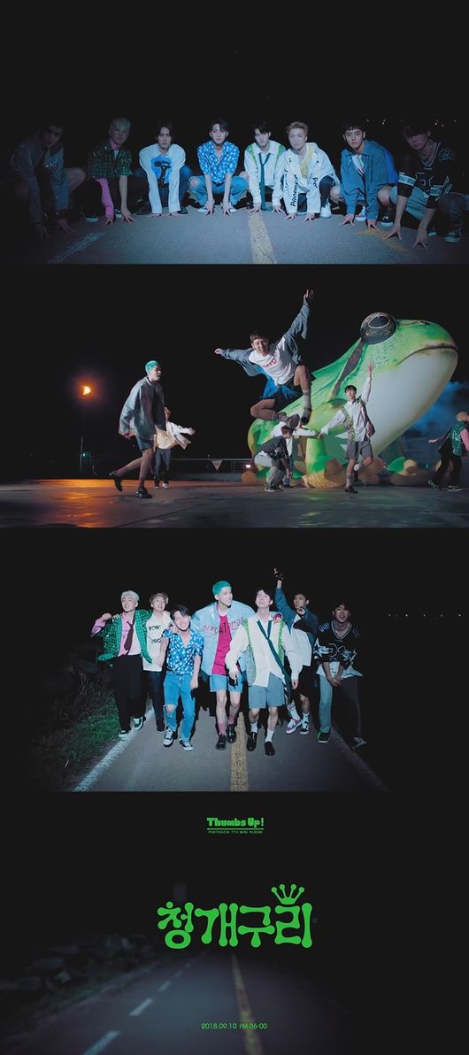 펜타곤은 10일 0시 펜타곤의 공식 SNS를 통해 일곱 번째 미니앨범 'Thumbs Up!' 타이틀곡 '청개구리'의 뮤직비디오 티저 영상을 공개하며 컴백에 대한 기대감을 높였다.
