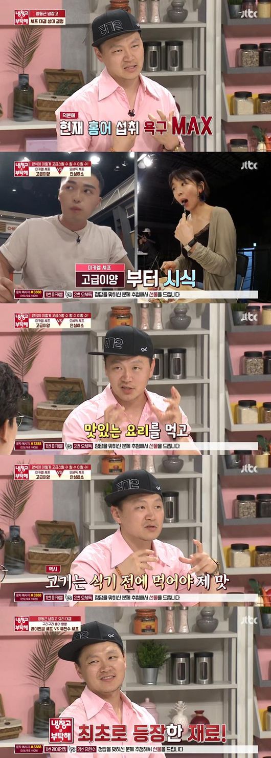 10일 오후 방송된 종합편성채널 JTBC 예능프로그램 '냉장고를 부탁해'에서는 양동근의 냉장고로 요리 대결이 진행됐다. 양식과 홍어 요리를 부탁한 양동근은 오세득과 레이먼킴을 선택했다.