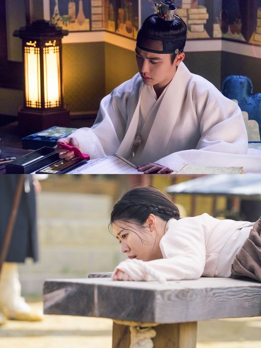 두 남녀의 운명은 공개된 스틸에서도 드러나고 있다. 늦은 밤 처소에 홀로 앉아 자신의 상처를 묶어줬던 이서의 붉은 댕기를 바라보고 있는 율. 먹먹한 표정과 댕기를 쓰다듬는 손길에 그리움이 묻어나온다. 반면, 홍심은 어릴 적 약조를 떠올릴 틈도 없이 당장 혼인을 올려야 하는 위기에 처했다. 스틸 속 형틀에 묶여있는 홍심은 장 백 대를 맞아야 하는 위태로운 상황에서도 꿋꿋이 맞서고 있다. 혼인을 약조한 사이였는데, 이제는 혼인하라 명을 내리고 그것을 따라야하는 정반대의 상황이 된 율과 홍심의 앞날은 어떻게 될까.