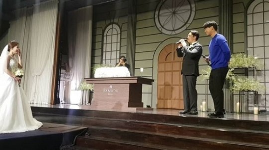 공개된 사진에는 김진호가 JTBC '히든싱어' 시즌4에 모창 능력자로 출연한 김정준 씨의 결혼식에 참석한 모습이 담겨있다.