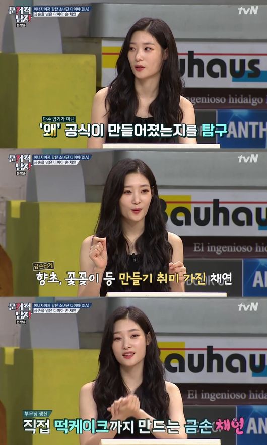 정채연은 '금손'을 넘어 '다이아 손' 면모를 자랑했다. 평소 손으로 하는 것이라면 다 잘 한다는 정채연은 "집에서 요리하는 것도 좋아하고, 부모님 생신 때 공방에 가서 떡케이크도 만든다"며 "제가 향초 만드는 것도 좋아한다. 오늘 만들어 왔다"고 '문제적 남자' 멤버들을 위해 직접 만든 석고 방향제를 선물했다.