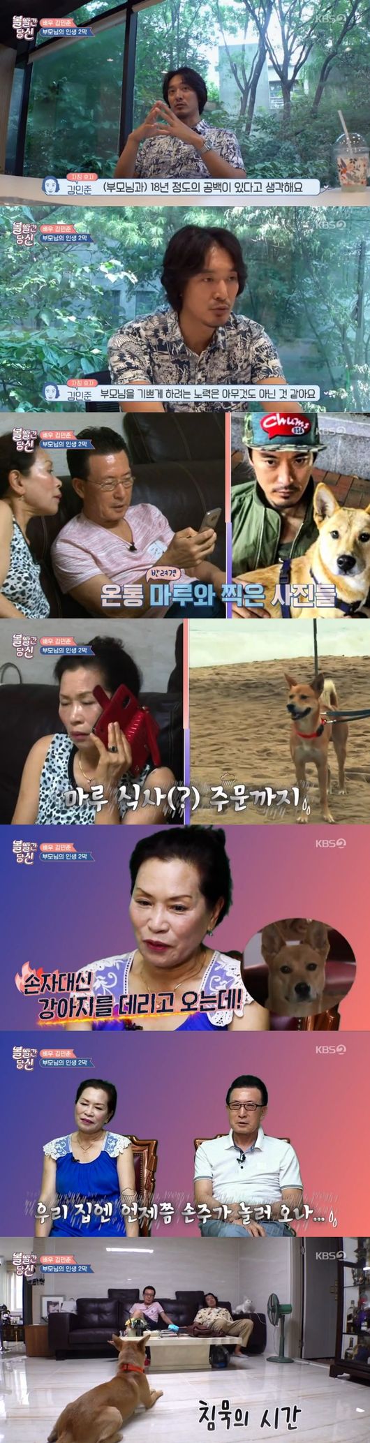 김민준은 부모님 집을 가기 전, 반려견 마루 바닷가 산책을 다녔다. 부모님은 사진들을 보며 민준에게 전화를 걸었다. 민준은 부모님께 마루 식사 준비부터 부탁했다. 부모님은 전화를 끊자마자 "마루 생각밖에 안 한다"며 서운해하면서 "결혼해서 사람을 데리고 와라"며 혼잣말을 했다. 인터뷰에서도 "이제 마흔셋, 반갑긴 뭐가 반갑냐, 손자대신 강아지를 데리고 온다"면서 "우리 집엔 언제쯤 손주가 오려나"라며 빨리 민준이 결혼하길 바라셨다.
