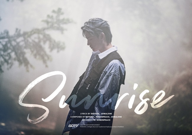 JYP는 12일 0시 자사 및 GOT7의 각종 SNS 채널에 JB 솔로곡 'Sunrise' 티저 포스터를 공개했다. 포스터 속 JB는 무언가 골똘히 생각에 잠긴 옆모습으로 '분위기 미남'다운 매력을 선사한다. 이에 'Sunrise'는 어떤 느낌의 곡일지 호기심을 자극한다.