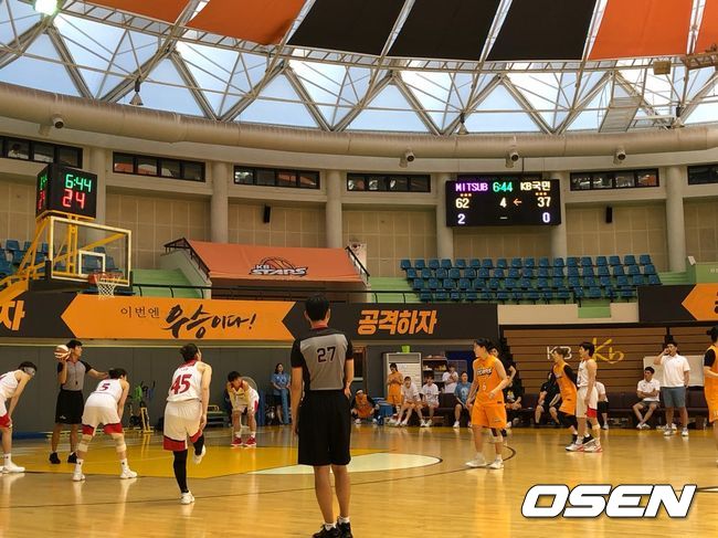 KB스타즈가 연습경기에서 일본 미쓰비시에 대패를 당했다.