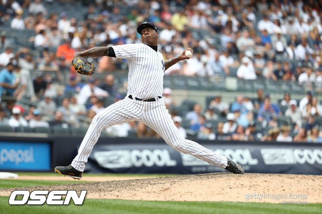 지난해 다소 부진했던 채프먼은 올해 1할3푼6리의 뛰어난 피안타율을 기록하고 있다. 볼넷이 많아지며 불안감을 남긴 경기도 있지만 9이닝당 탈삼진 개수가 16.09개에 이르는 등 여전히 강한 구위 자체는 이어가고 있다. /skullboy@osen.co.kr
