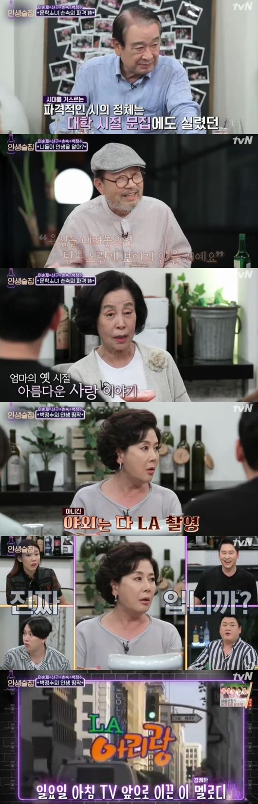 13일 방송된 tvN 예능 '인생술집'에서넘사벽 전설의 배우특집으로 이순재, 신구, 손숙, 박정수가 출연했다.