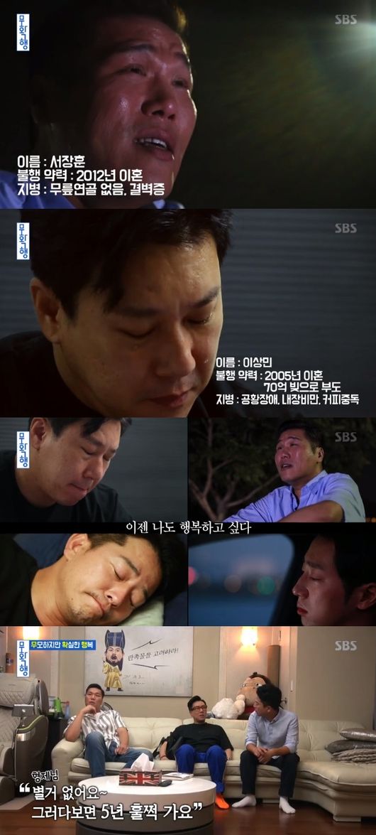 이상민, 서장훈, 김준호는 지난 13일 첫 방송된 SBS '무확행-무모하지만 확실한 행복'(이하 '무확행')에서 사전 만남을 가졌다. '무확행'은 어딘지 모르게 '짠한' 네 남자 서장훈, 이상민, 김준호, 이상엽이 남들 눈에는 무모하고 다소 무식해 보일지 몰라도 각자 자신들만의 ‘확실한 행복’을 찾아 떠나는 生처절 리얼 로드쇼다.