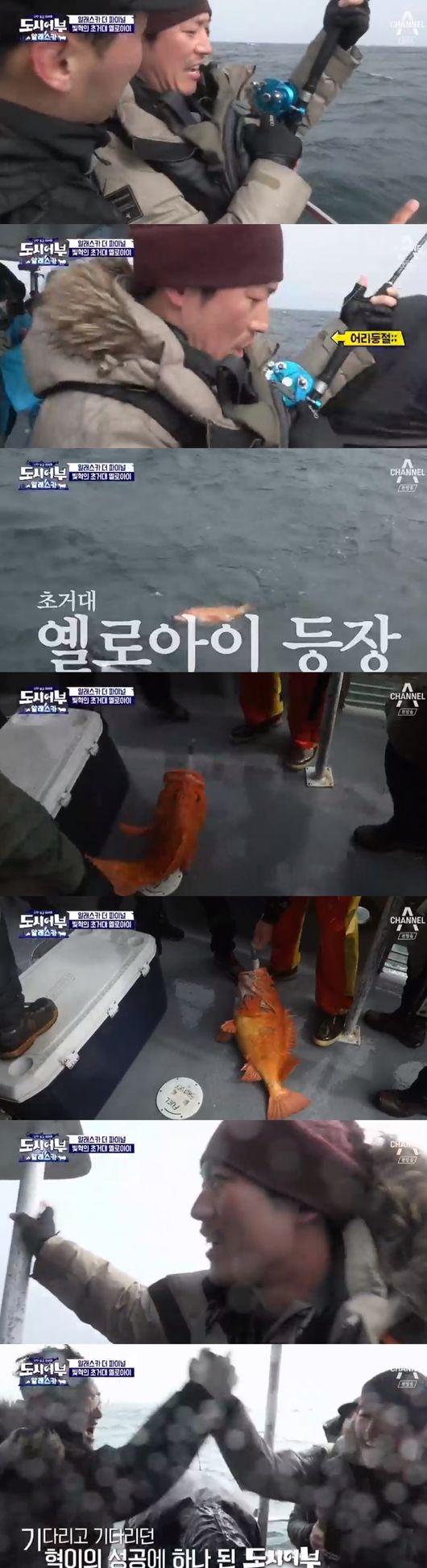초보낚시꾼 장혁의 인간승리. 초거대 옐로아이 등장에 도시어부 멤버들은 한 마음으로 환호성을 질렀다.