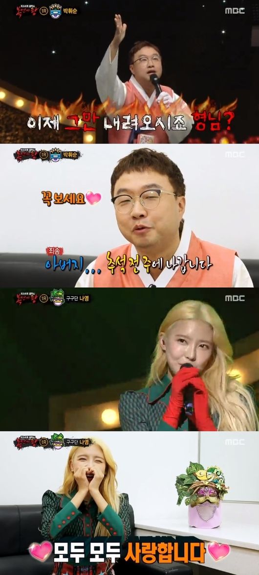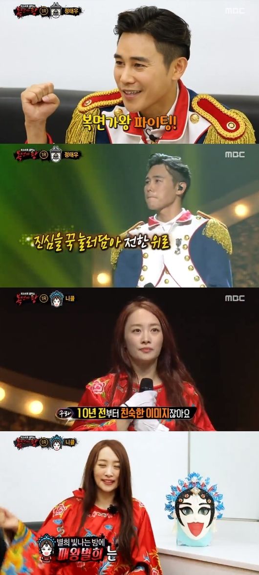 '복면가왕' 정태우 니콜 박휘순 구구단 나영이 실력을 입증하며 의외의 면모를 뽐냈다.