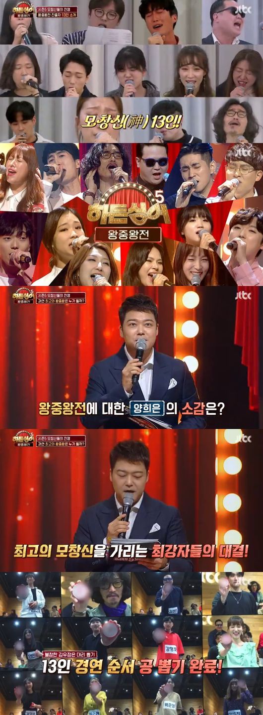 16일 방송된 JTBC 예능 '히든싱어 시즌5'에서 모창들의 전쟁이 선포되며 왕중왕전이 그려졌다.