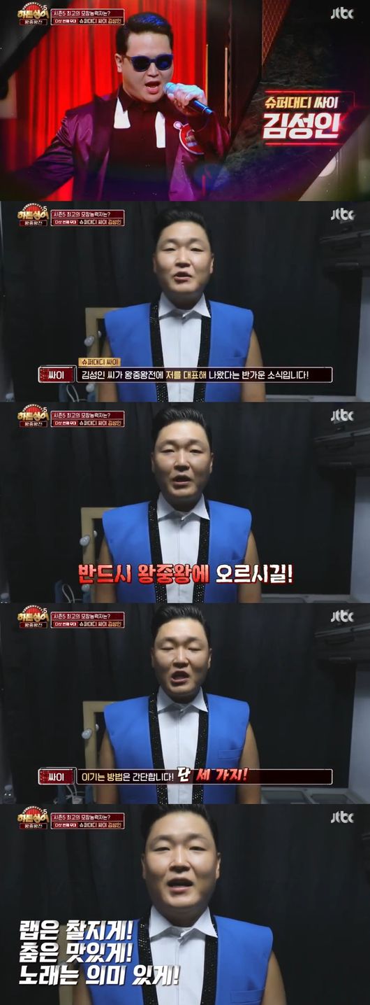 다음은 제작진들까지 가장 기대된다는 모창능력자, 슈퍼대디 싸이인 김성인이었다. 싸이는 "반가운 소식"이라면서 "두번재 오르는 무대인 만큼 반드시 최고가 되길, 랩은 찰지게, 춤은 맛잇게, 노래는 의미있게 이 세가지만 기억해라"고 전했다.