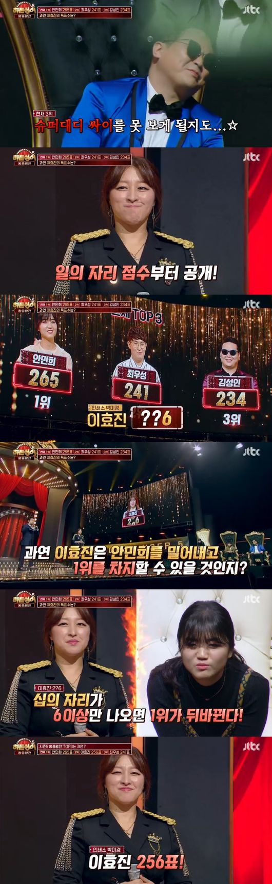 모두 1위 탈환을 예상하는 가운데, 아쉽게도 이효진은 256표를 득점하며 여전히 초밥집 린을 꺾지 못했다. 대신 남녀 린을 비집고 2위에 등극했다. 1위 탈환을 예상했기에 아쉬운 결과였다.