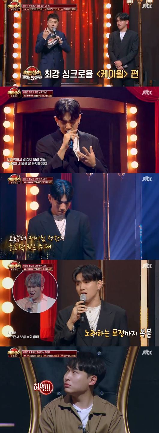 치열한 접전 속에서 또다른 역사를 썼던 '오늘부터 케이윌'의 정한이 등장했다. 케이윌 특유의 중저음부터 감성까지 완벽재현했던 그였다. 케이윌은 "네가 우승할 것"이라며 파이팅을 외쳤다. 정한은 최강난이도를 자랑했던 '이러지마, 제발'곡을 선곡했다.