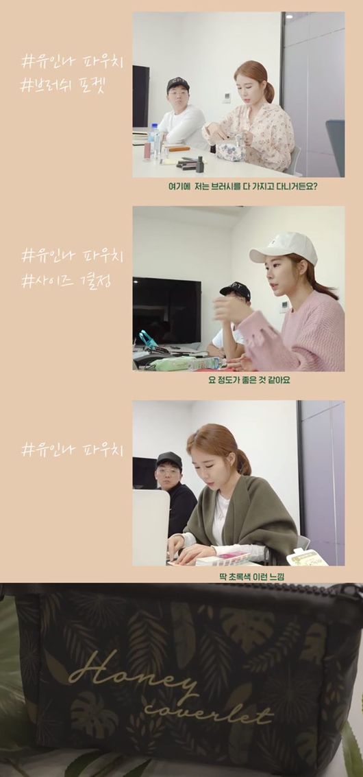 해당 영상에서 유인나는 자신의 파우치를 가리키며 "이 파우치가 좋은 이유는 브러시 케이스가 따로 필요 없다는 점이다"라고 설명하고 있다. 그는 이어 "나만 볼 수 있는 파우치여야 한다", "바로 이거다. 이게 제가 원하던 스타일이다", "종이 한 장을 넣어도 카드를 넣는 느낌으면 좋겠다" 등 다양한 의견을 제시하고 있다.